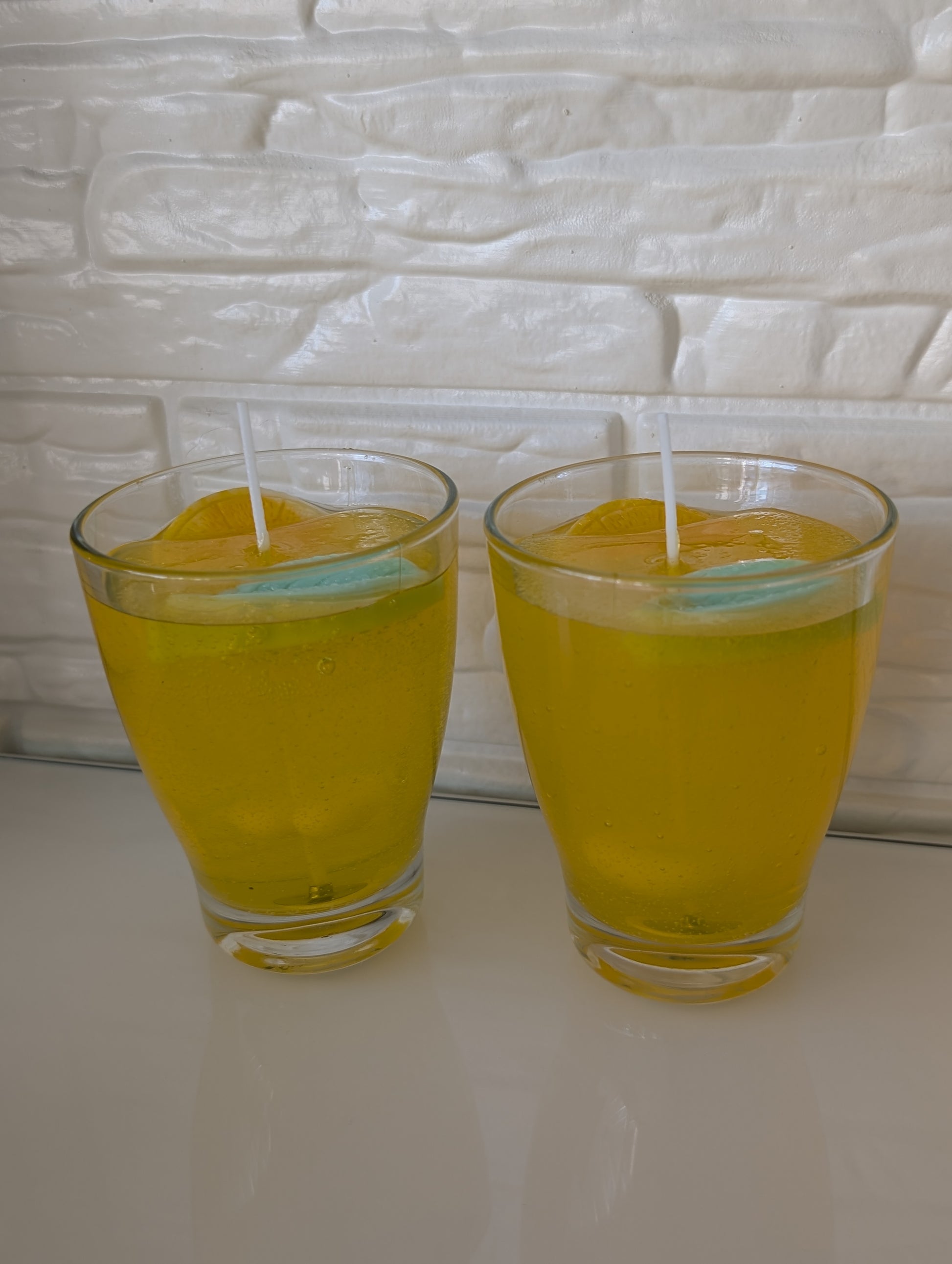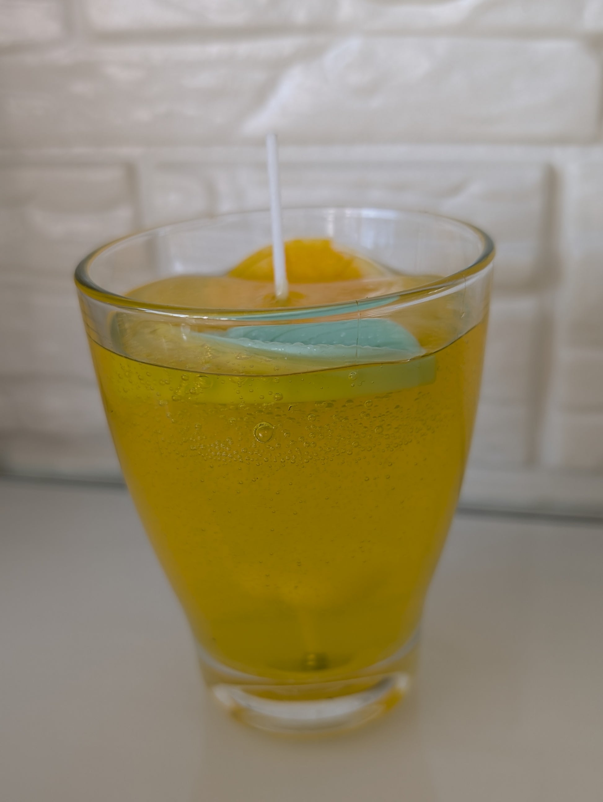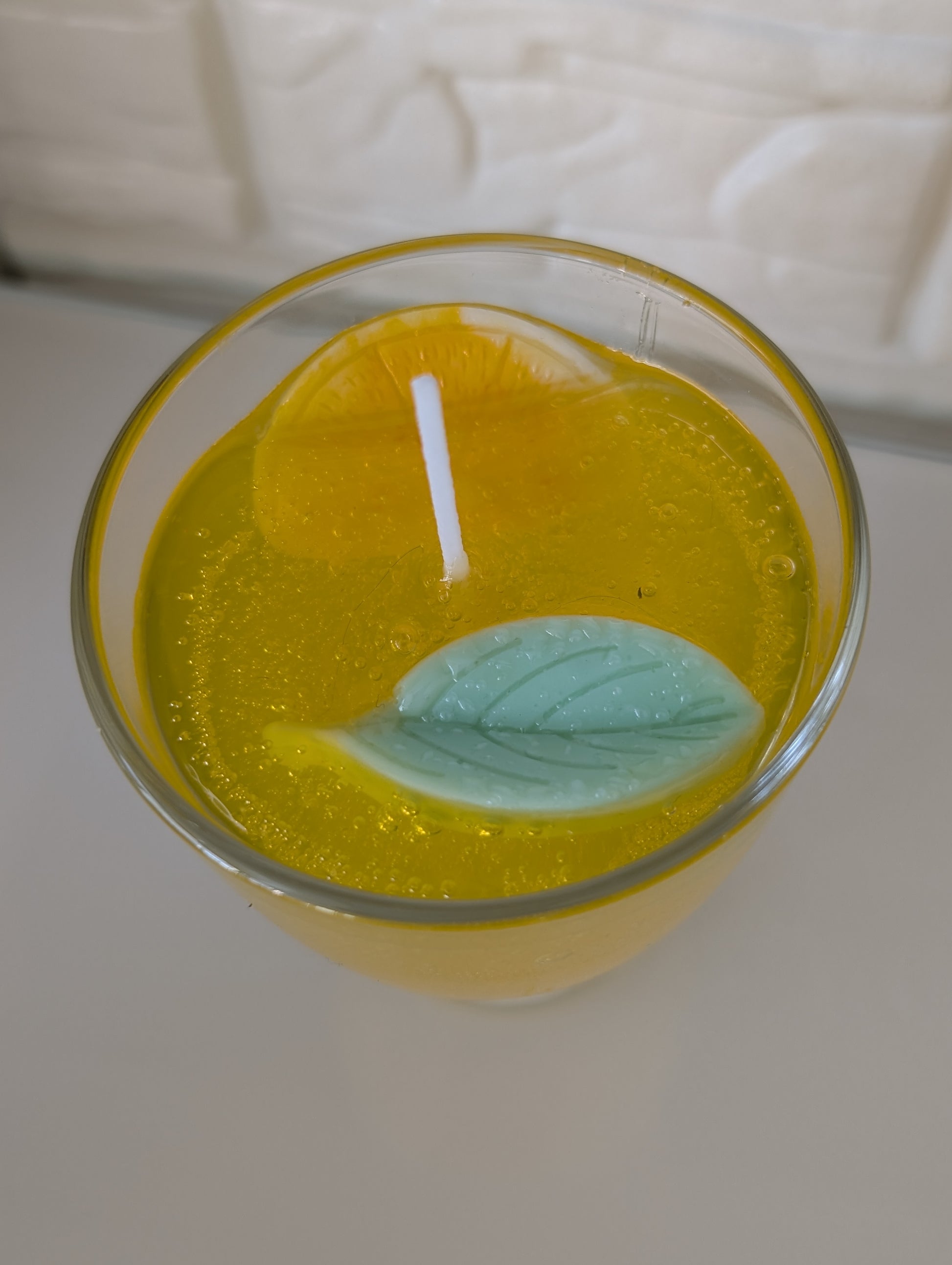 Die Orangenscheibe und das Blatt sind aus Bio-Sojawachs.